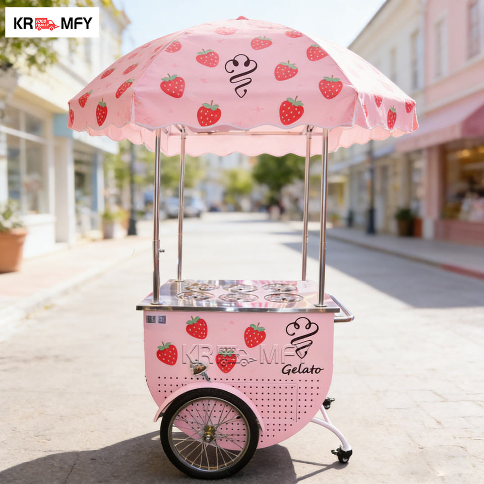 Chariot de vente de crème glacée mobile personnalisé avec rangement pour festivals, parcs, plages, location commerciale