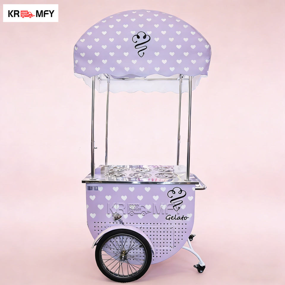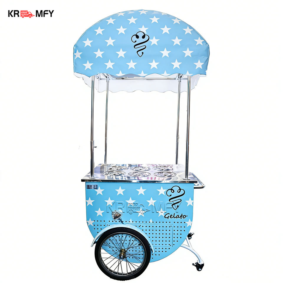 Chariot mobile de vente de glaces avec éclairage LED pour marché nocturne, restauration de rue et événements