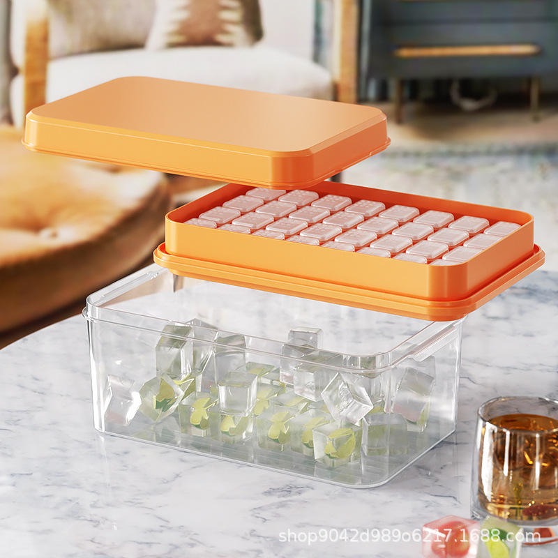 Bac à glaçons avec boîte de rangement, en plastique carré de qualité alimentaire, congélation rapide, grande capacité, pour usage domestique
