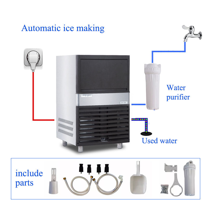 Machine à Glaçons Automatique 60kg, Professionnelle et Domestique, pour la Fabrication de Cubes ou Blocs de Glace – Idéale pour Commerce, Vente, Alimentation et Boissons