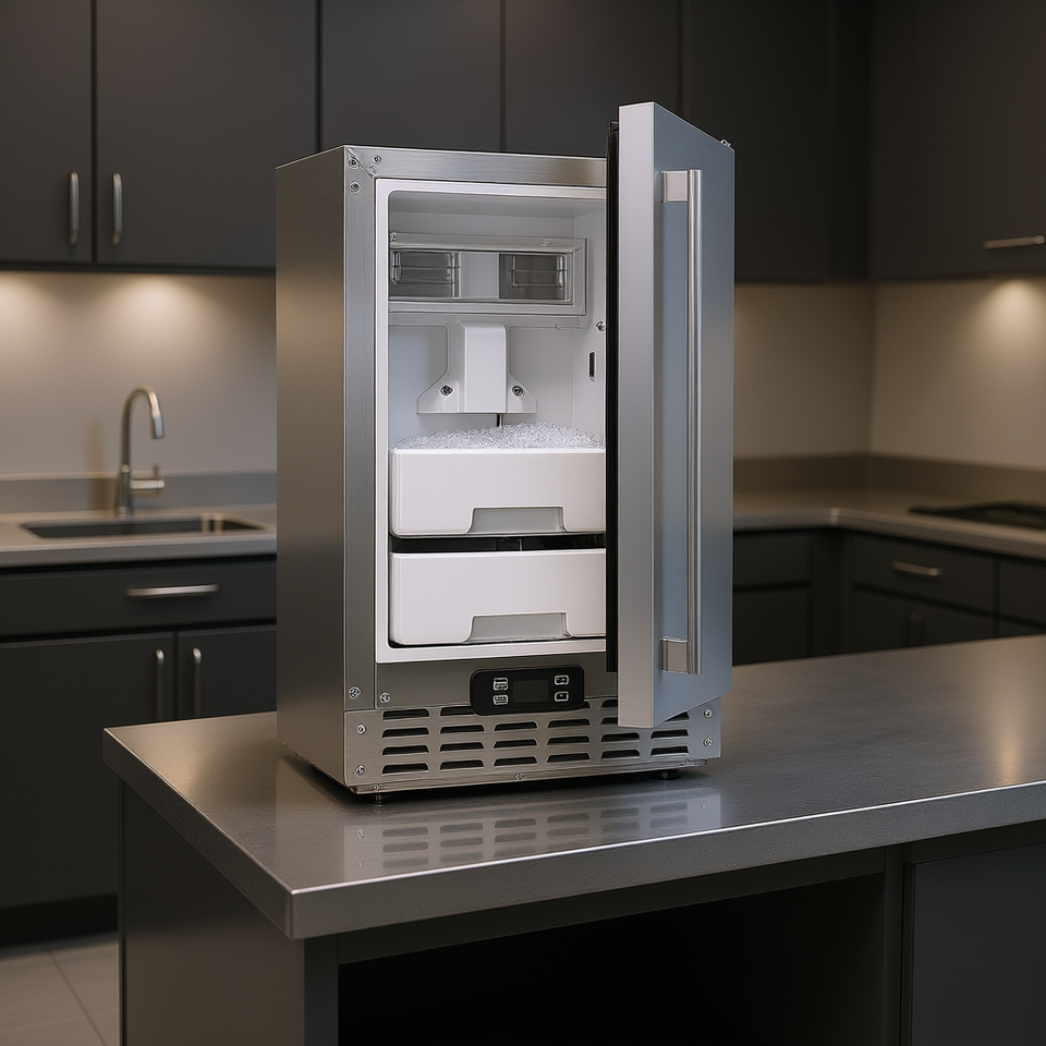 Machine à glaçons 66 lb/jour en acier inoxydable, encastrable sous comptoir, commerciale, électrique, à glaçons cubiques, commande par bouton-poussoir