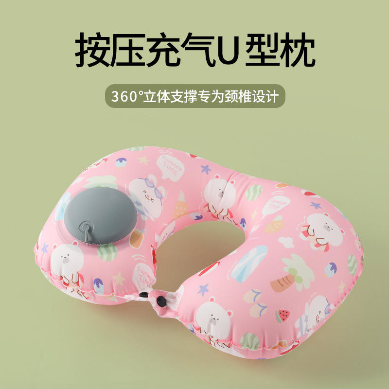 Oreiller de voyage gonflable en soie glacée en forme de U, portable, avec motif animalier, pour utilisation en avion