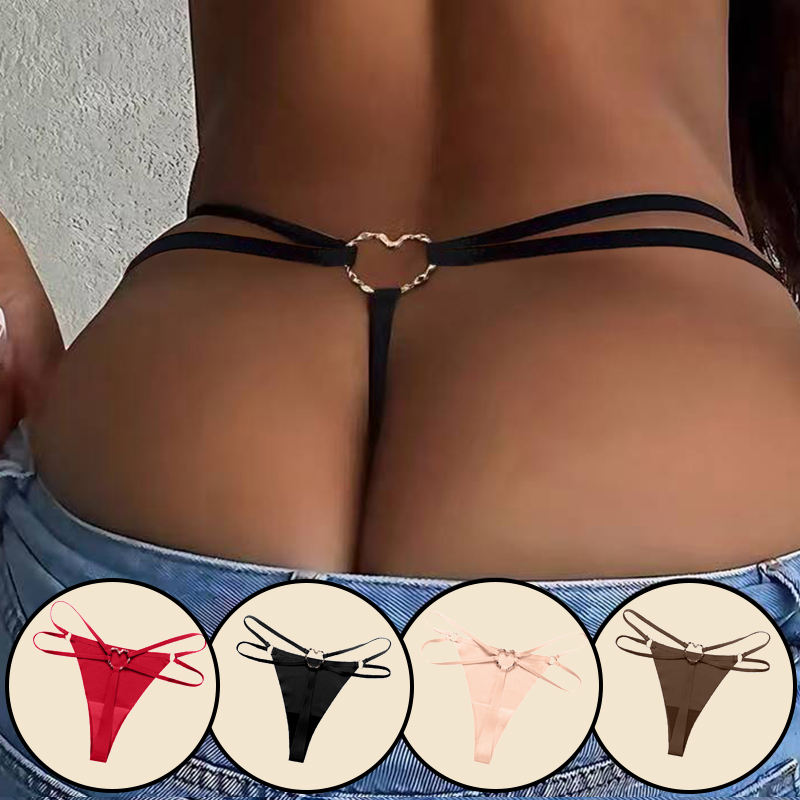 String en soie glacée en stock, grande taille, vente en gros, sexy, dos nu, anneau métallique en forme de cœur, culottes pour femmes, string, tanga, sous-vêtements