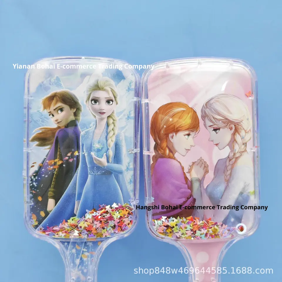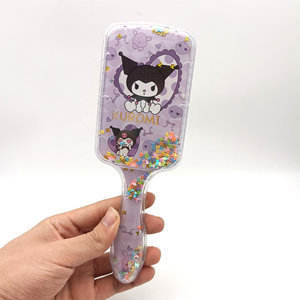 Glace neige carré Long manche Nylon Sequin liquide sable cheveux peigne Sanrio Hello Kitty dessin animé mignon Massage peigne en gros
