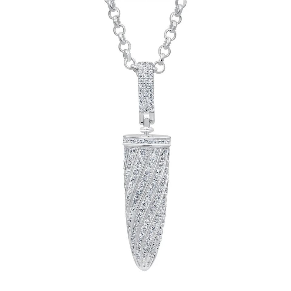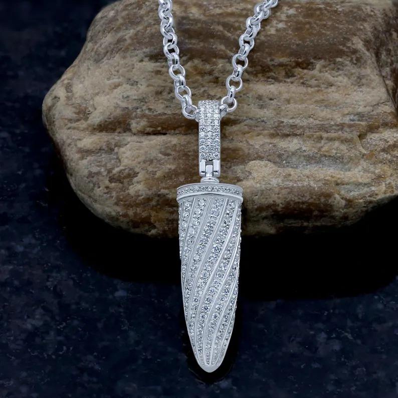 Collier pendentif balle glacée en argent 925 plaqué rhodium, breloque tactique de luxe