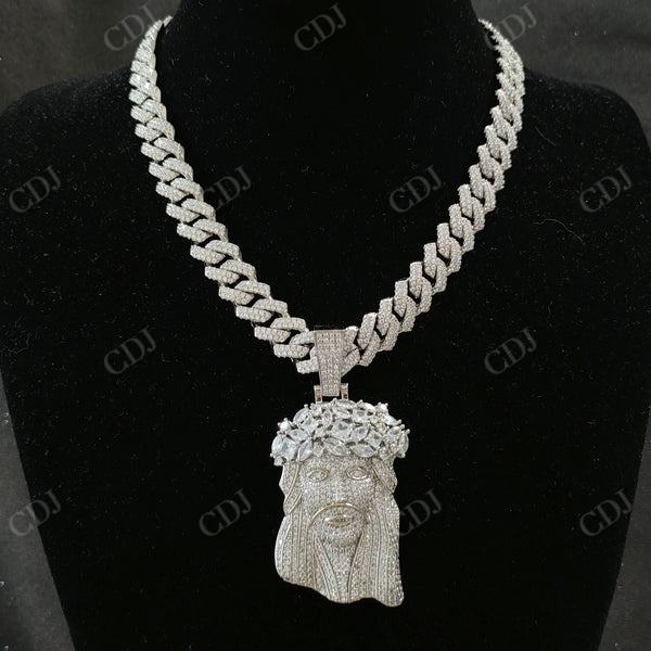 Pendentif Jésus religieux de style hip-hop glacé, grand format, luxueux et élégant pour homme, en moissanite marquise plaqué or sur argent sterling