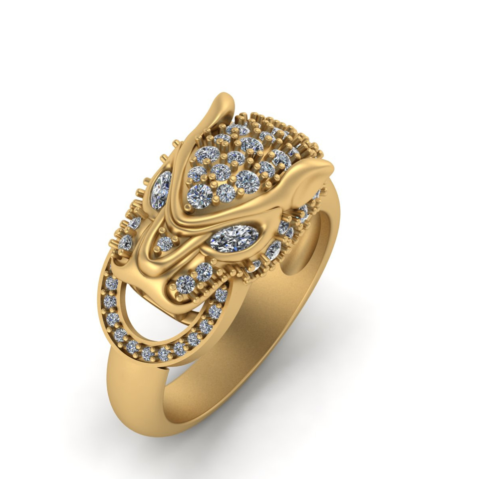 Bague en diamant à tête de panthère en or massif 10K personnaliséeType d'anneaux