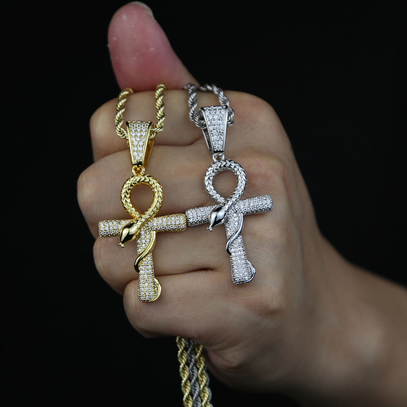 Bijoux animaux glacés en argent plaqué or pour hommes 5A zircone cubique cz plein diamant corss serpent pendentif collier