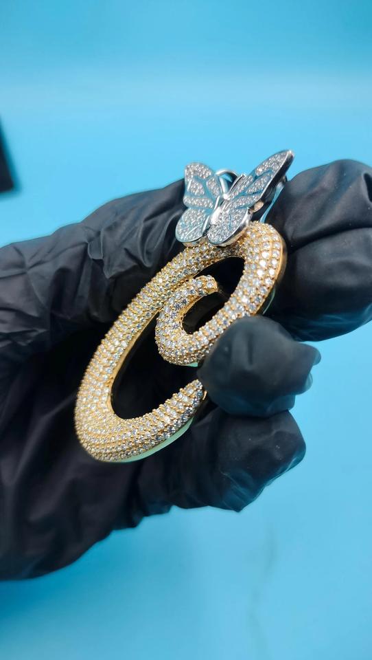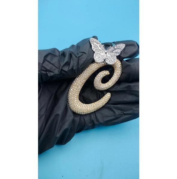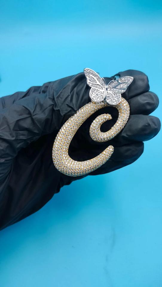 Pendentif unisexe en argent 925 avec initiale C en forme de papillon, serti de diamants Moissanite VVS, style Iced Out de luxe