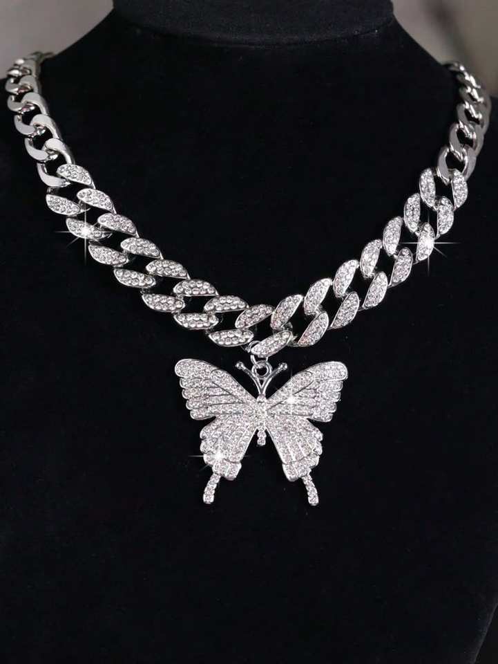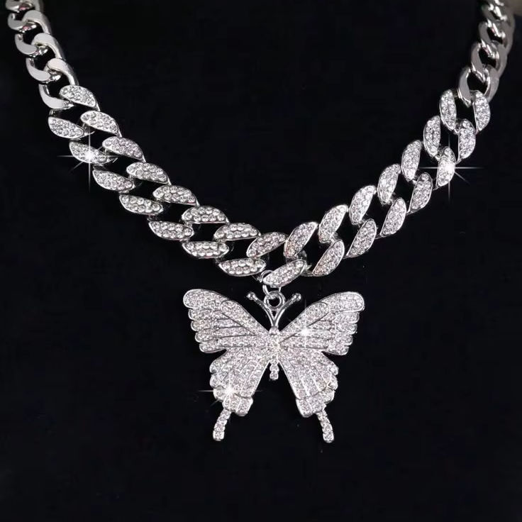 Pendentif Papillon Iced Out et Chaîne Miami Cuban en Or 14K avec Moissanite VVS et Diamant de Laboratoire, Collier Hip Hop Bling pour Hommes et Femmes