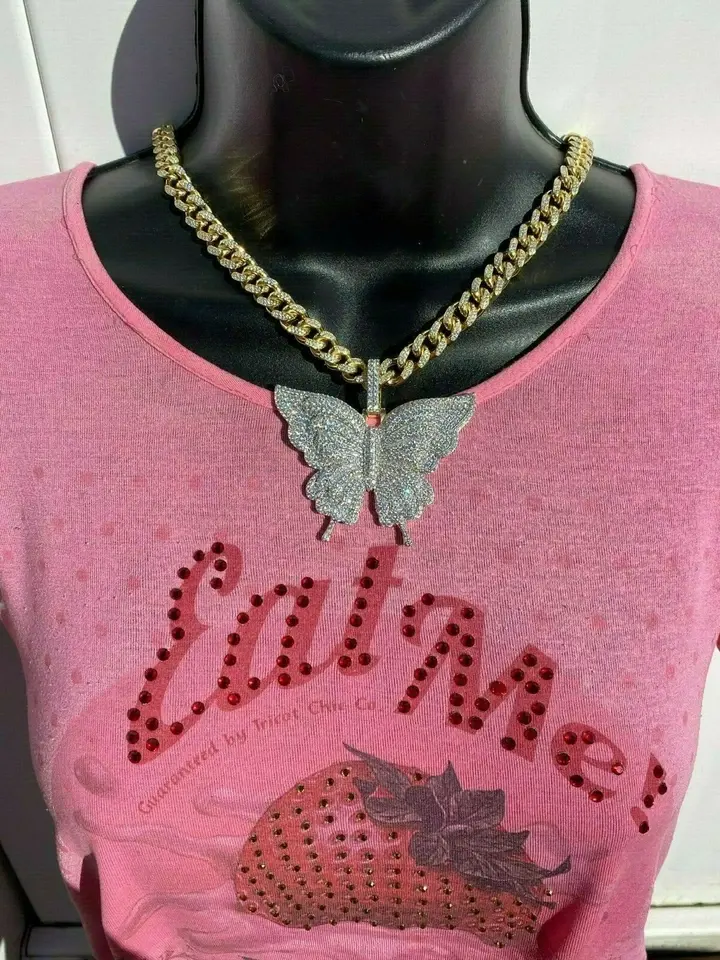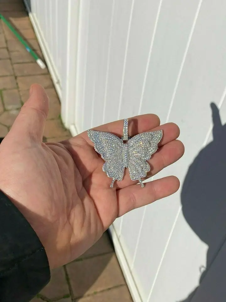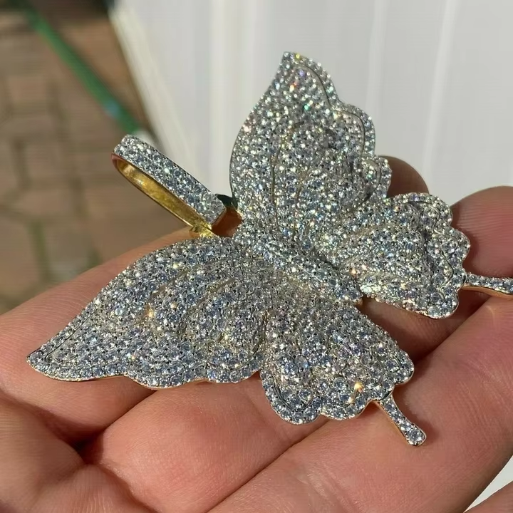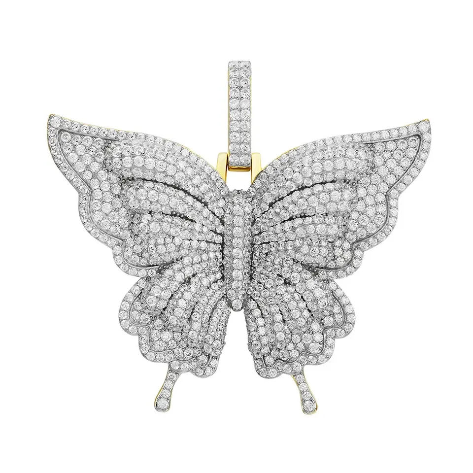 Collier pendentif papillon en argent sterling plaqué or Tishya, serti de diamants, style hip-hop, avec micro-pavé de moissanite taille brillant