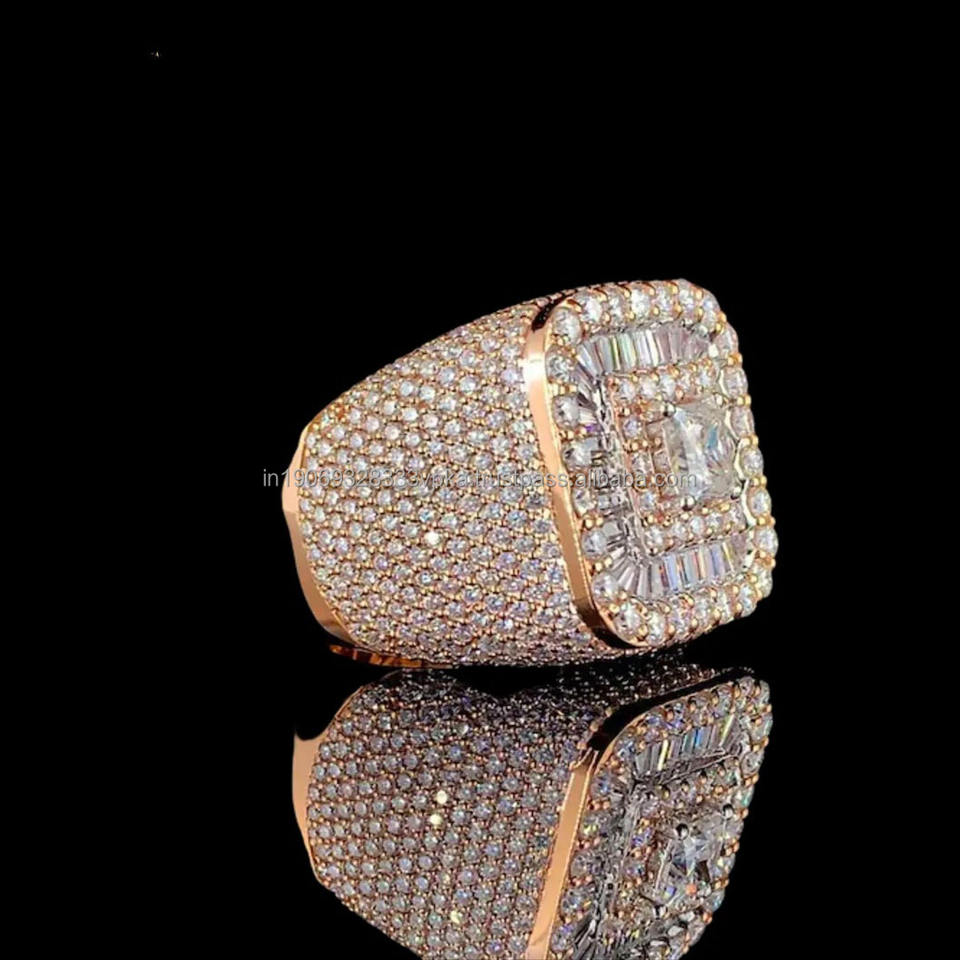 Bague Hip Hop en argent sterling 925 sertie de moissanite taille princesse classique glacée, faite à la main, pour un cadeau de fiançailles ou de mariage