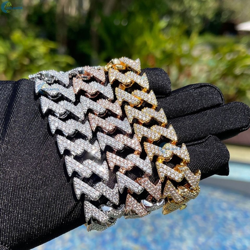 Bracelet en diamants de laboratoire incolores sertis de pierres, pour homme, bracelet cubain personnalisé, style hip hop, bracelet bling-bling style rappeur