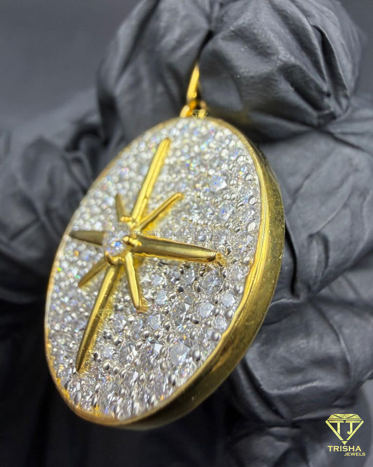 Pendentif médaillon étoile boussole Iced Out, diamant de laboratoire VVS, bijou de luxe tendance pour homme, bijoux hip-hop de créateur