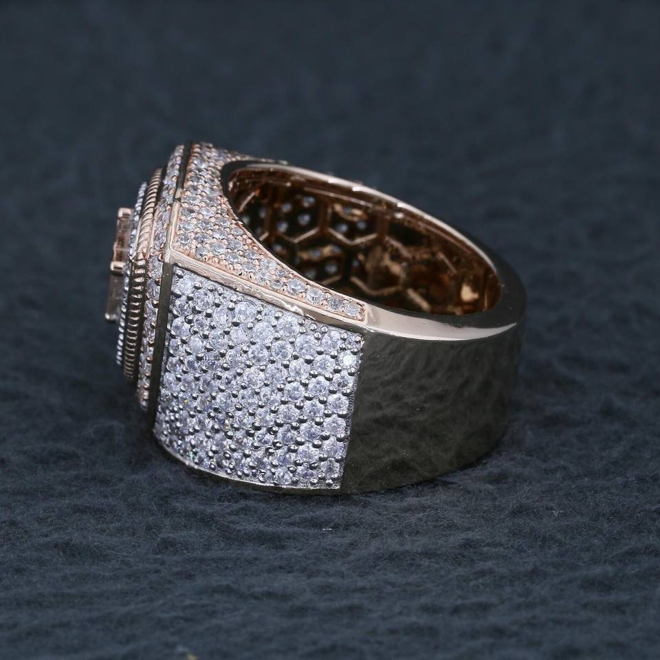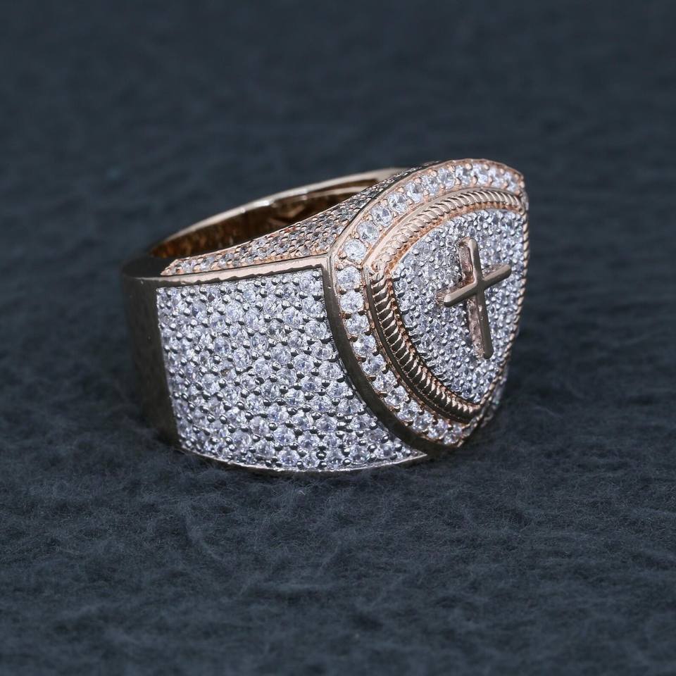 Bague Statement en Argent Sterling Massif Plaqué Or avec Moissanite Iced Cross 4 carats, sans Nickel, sans Plomb, Bijoux Hip Hop de Luxe pour Hommes
