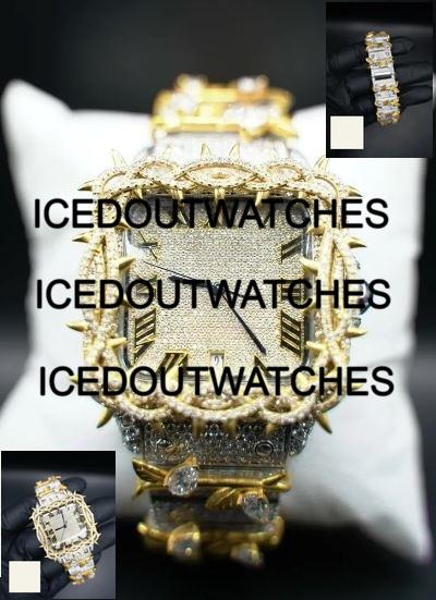 Ensemble montre et bracelet en acier inoxydable et moissanite, style hip-hop, cadran carré, résistant à l'eau 10 bars, pour cadeau de mari