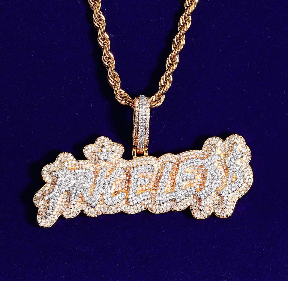 Iced Out Custom Bubble Letter Pendant VVS Moissanite 925 Sterling Silver Hip Hop Jewelry 18k Gold Plated Name Pendant Men