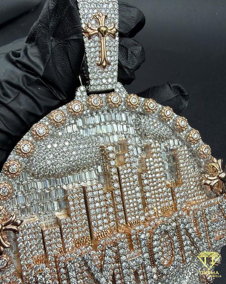 Pendentif personnalisé Iced Out avec nom et silhouette de ville, hip-hop, diamant Moissanite, breloque de luxe pour homme