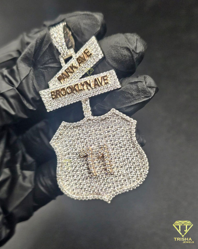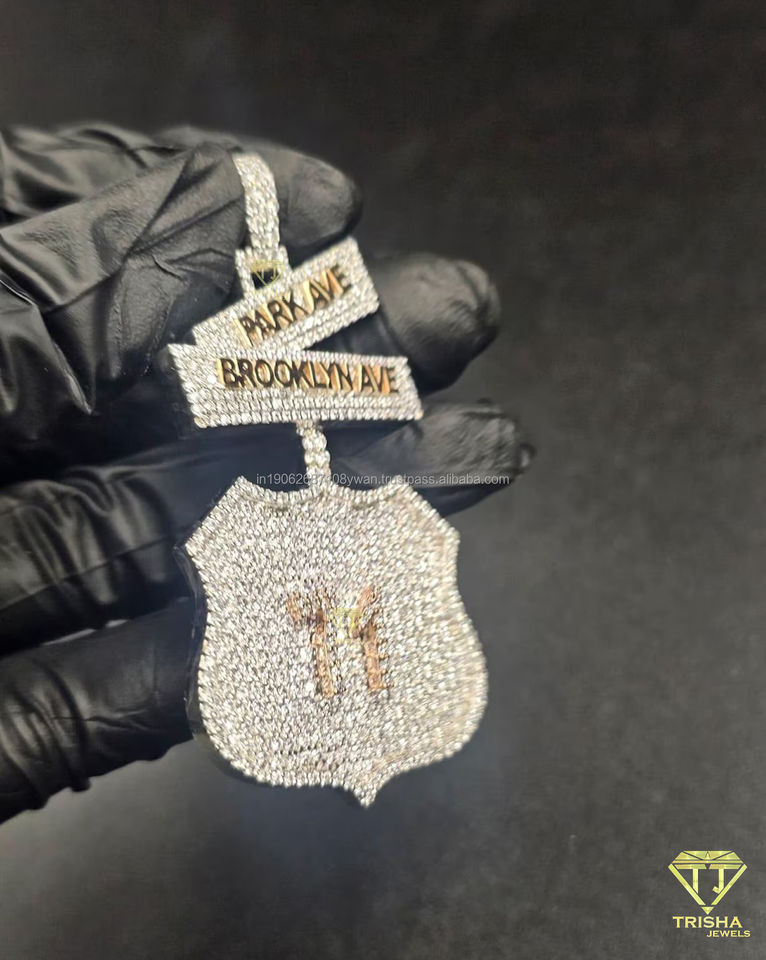 Pendentif de luxe personnalisé en forme de panneau de rue, serti de moissanite, style Hip Hop, avec bouclier, collier statement