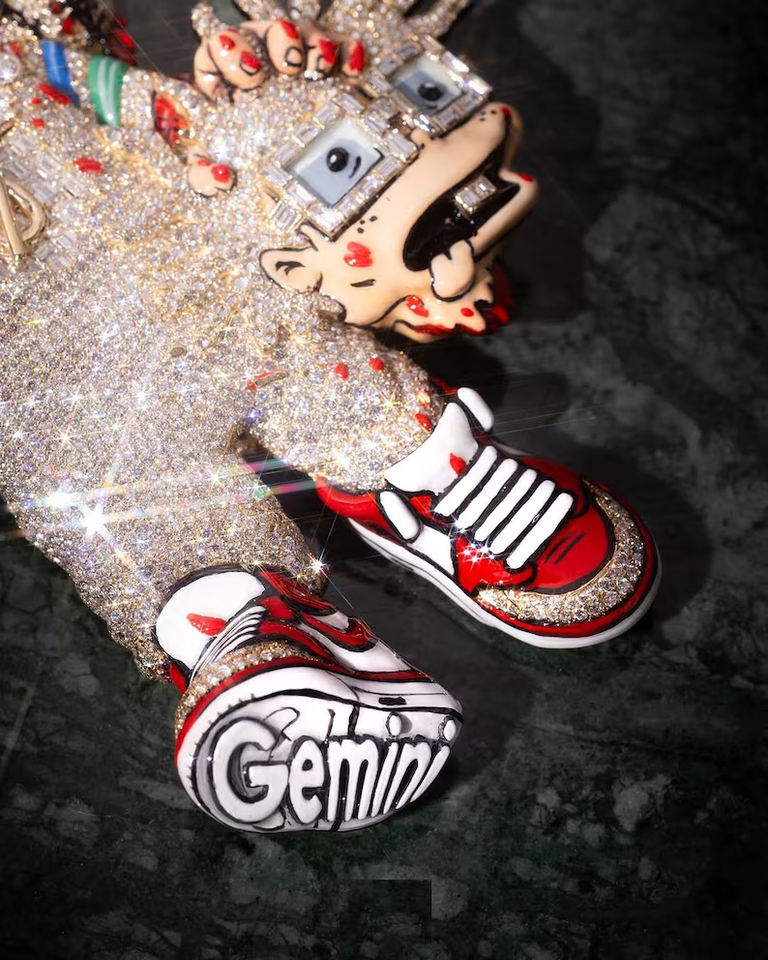 Pendentif de personnage de poupée glacé pour homme avec pierres multicolores et design de bijoux Hip Hop audacieux