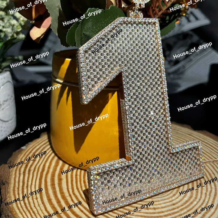 Pendentif en forme de dollar glacé numéro un, diamant moissanite, style hip-hop, charme statement, argent, cadeau de luxe pour unisexe