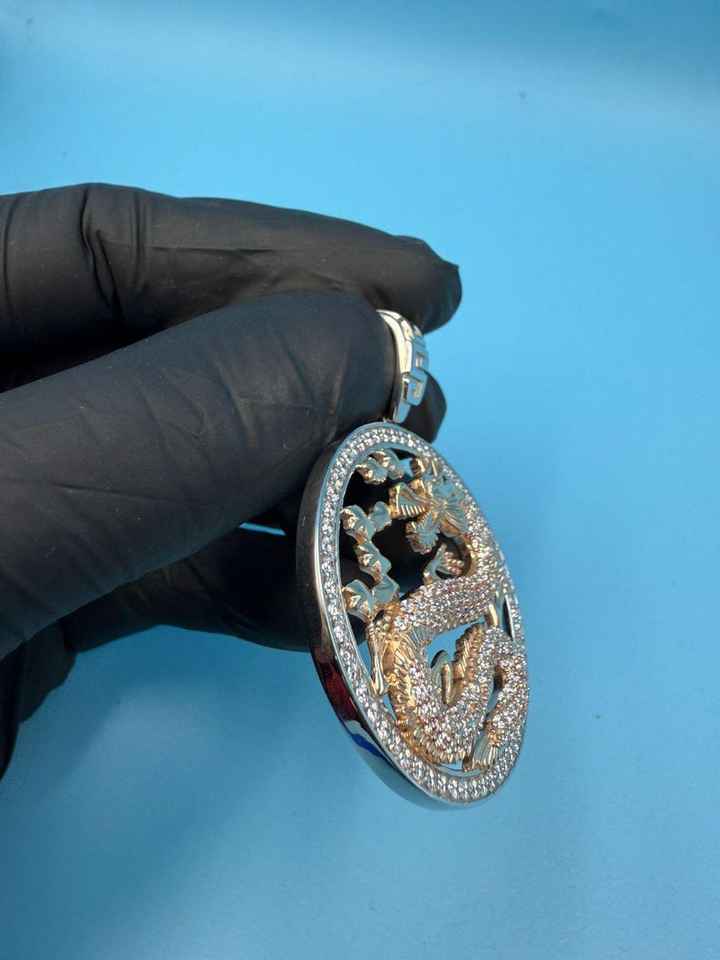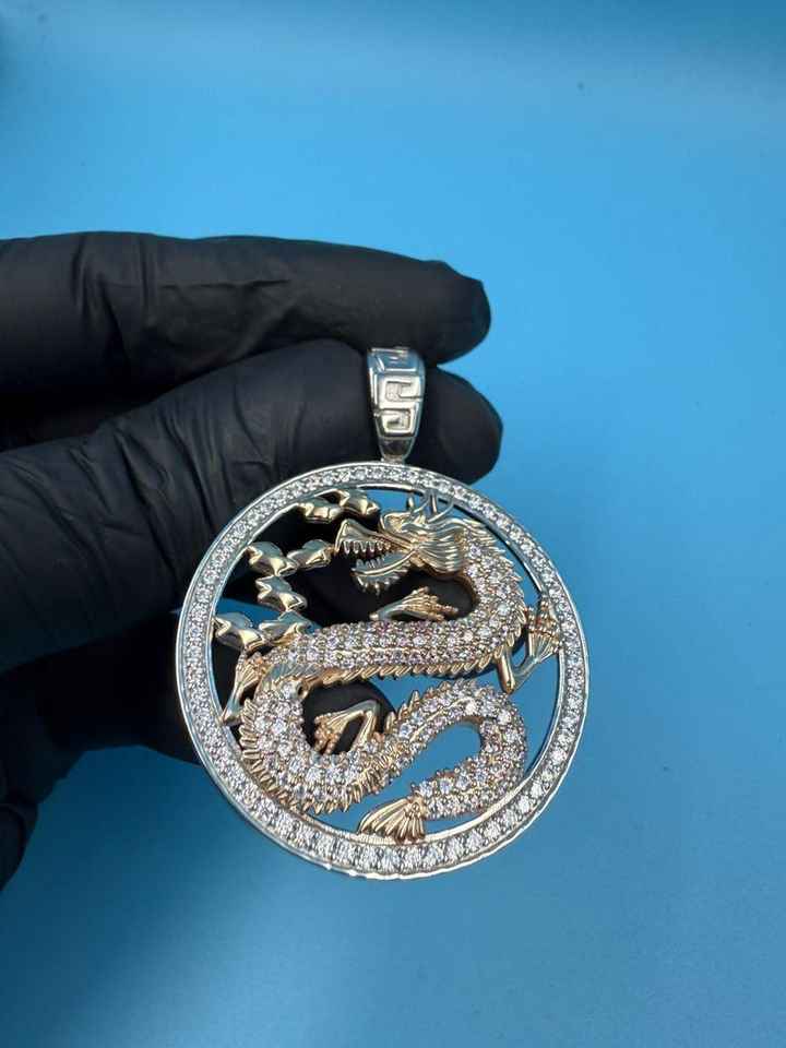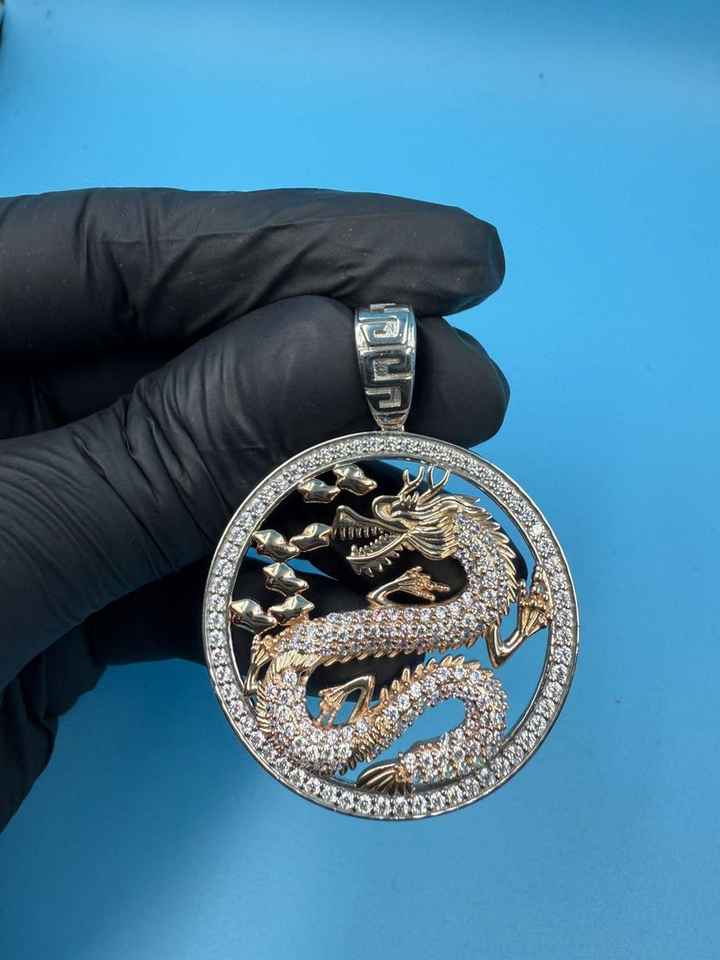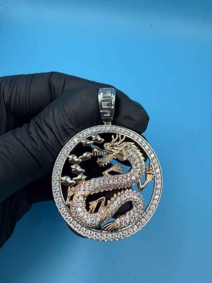 Pendentif Dragon Iced Out Bicolore en Argent Sterling 925, Pendentif Hip Hop, Créature Puissante et Mystique de l'Orient, Pendentif Moissanite
