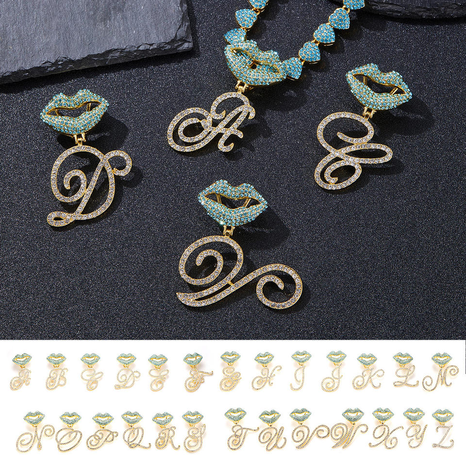 Coeur glacé chaîne cubaine cristal papillon initiales nom pendentif collier glacé lettres cursives rappeur collier bijoux