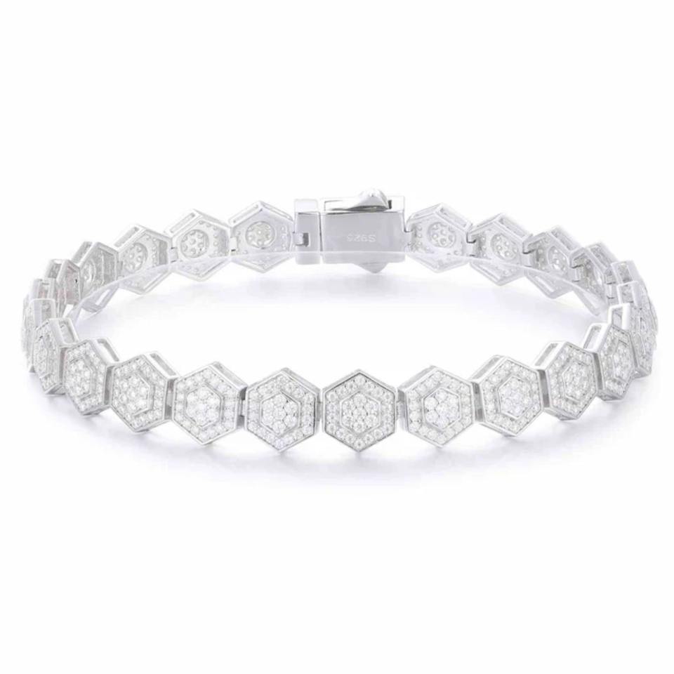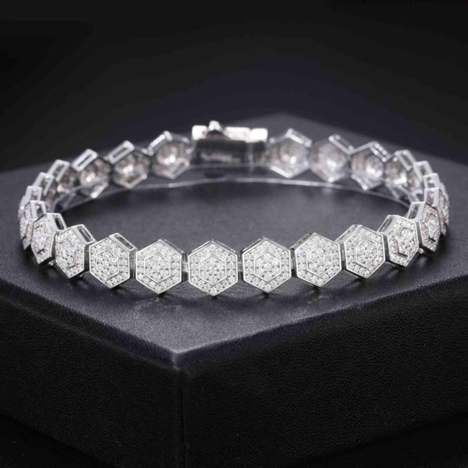 Bracelet Tennis Hip Hop Moissanite Effet Givré, Diamants Ronds Brillants, en Argent Massif 925, Bijoux Diamantés, Bracelet Hexagonal