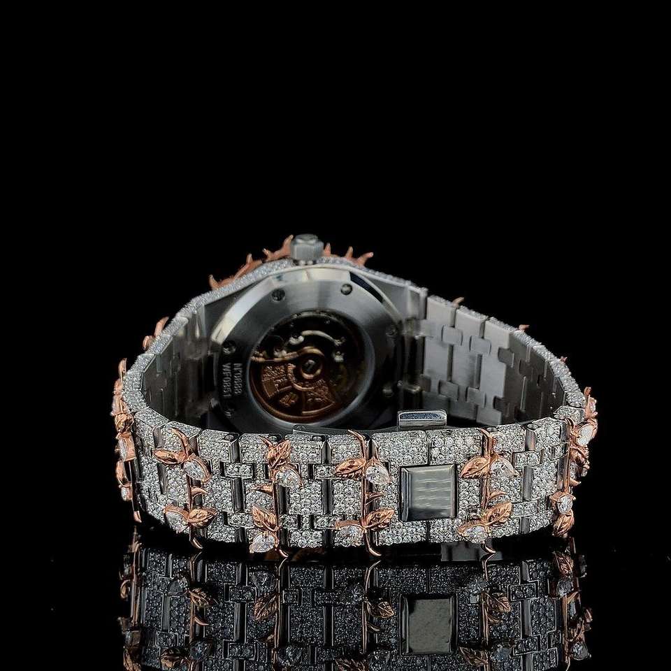 Iced Out Hip Hop Style 41 MM De Luxe Moissanite Diamant Montre Coupe Ronde En Acier Inoxydable Unique Montre Cadeau Pour Hommes