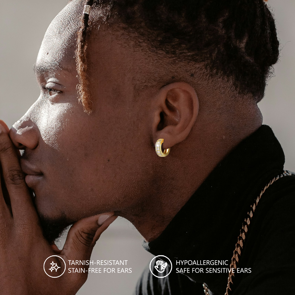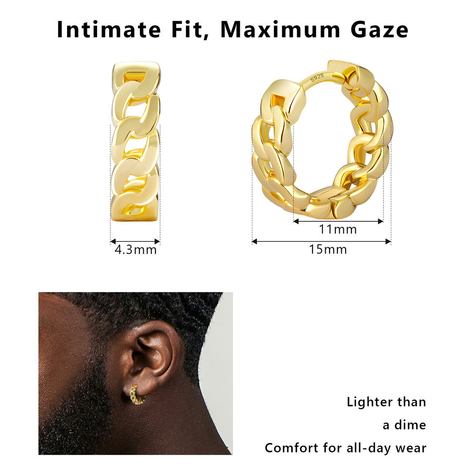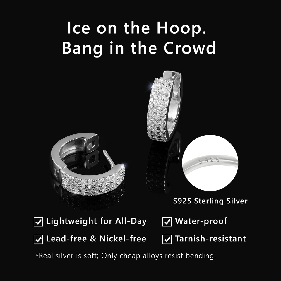Boucles d'oreilles créoles Iced Out en argent sterling S925 plaqué or 14K, hypoallergéniques, style Hip Hop, avec zircone cubique 5A, pour hommes et femmes