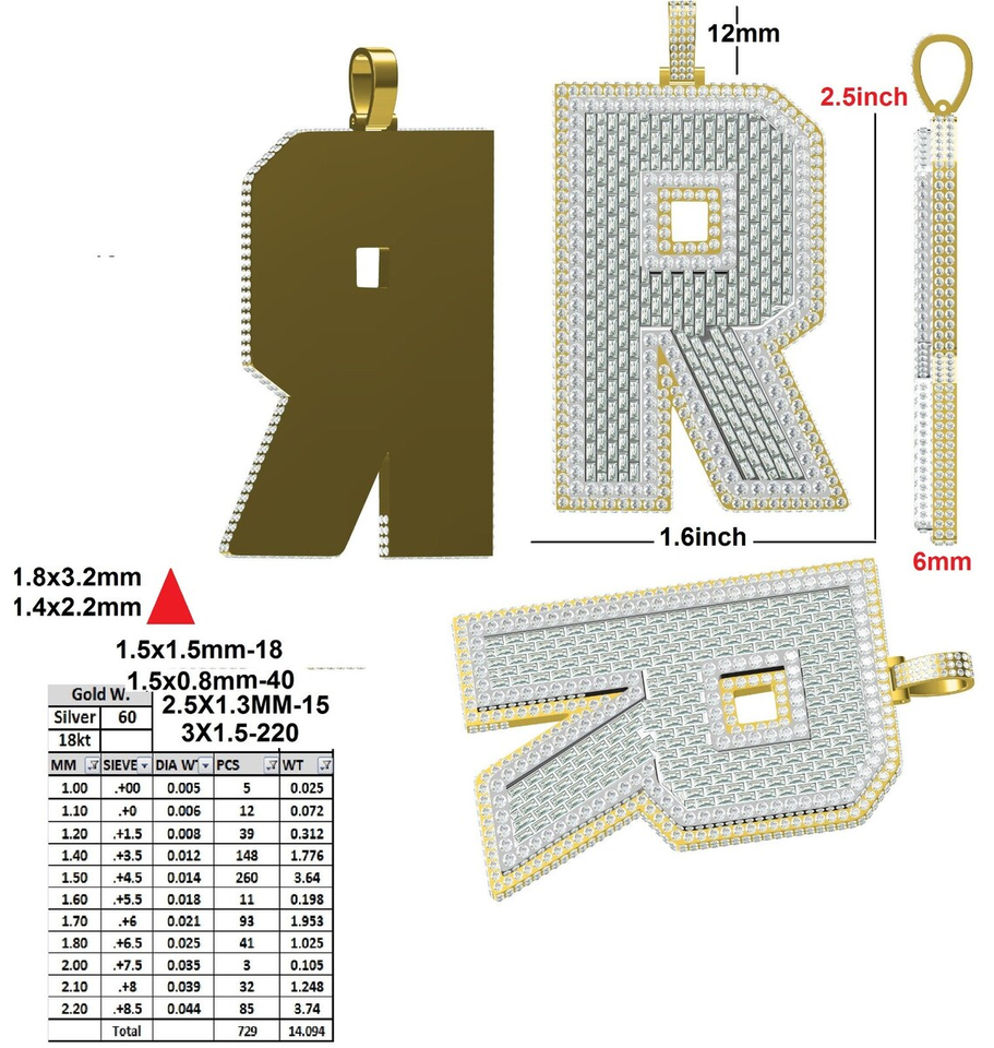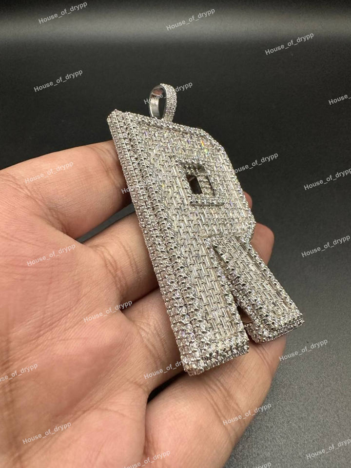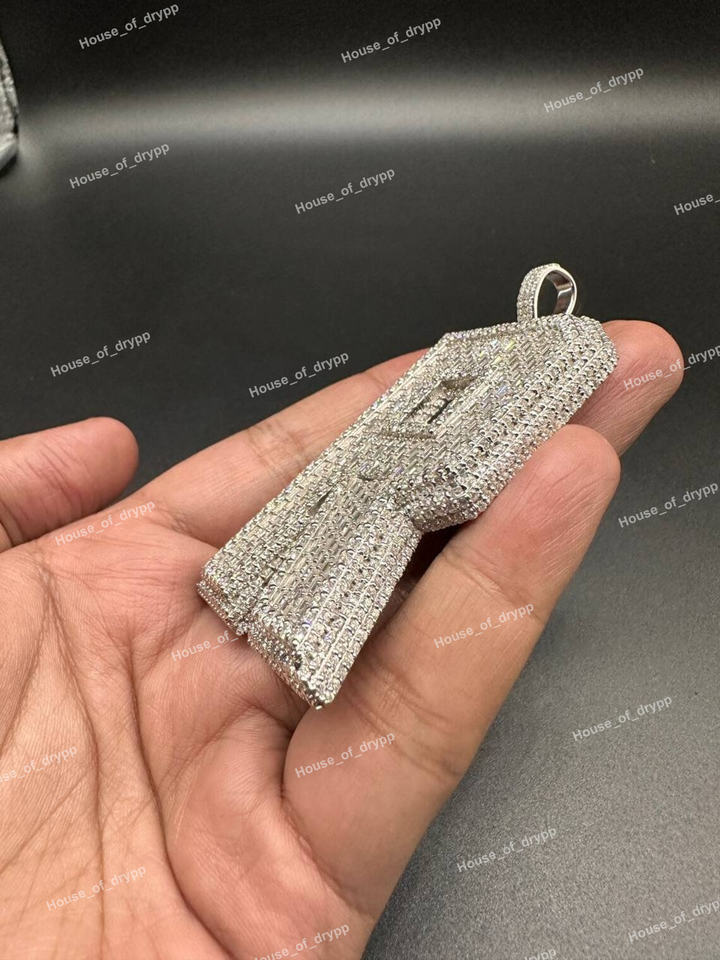 Collier Pendentif Lettre R Initiale Sertie de Diamants en Argent Sterling 925, Style Hip Hop Bling avec Moissanite Taille Baguette
