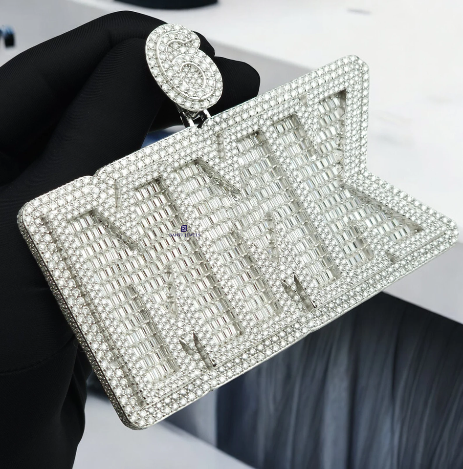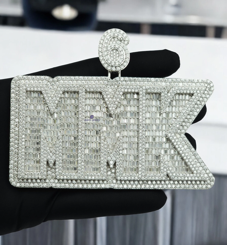 Pendentif lettre MMK serti de diamants Moissanite VVS, bijoux Hip Hop personnalisés, chaîne de luxe en argent, breloque