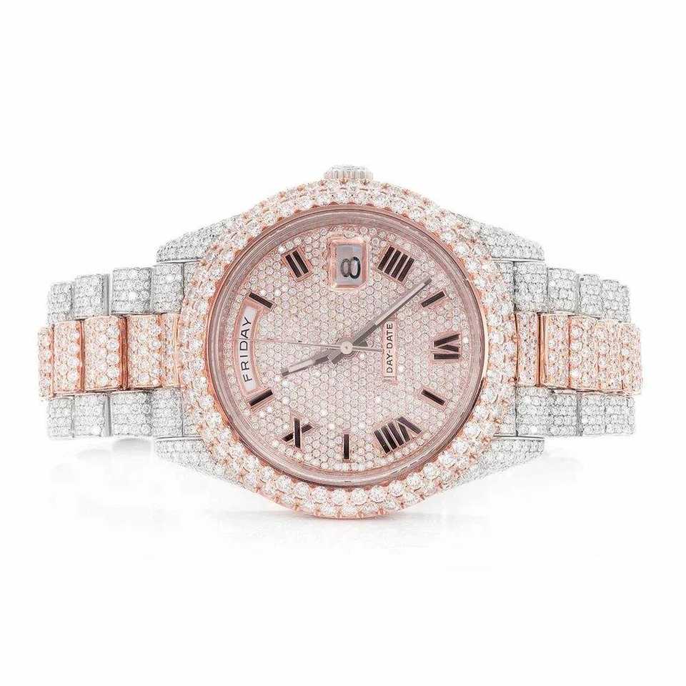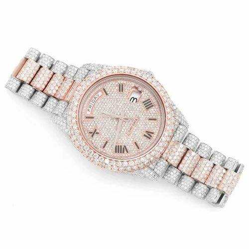 Montre de jour Moissanite Iced Out bicolore or rose et argent, style diamant de luxe, Hip Hop