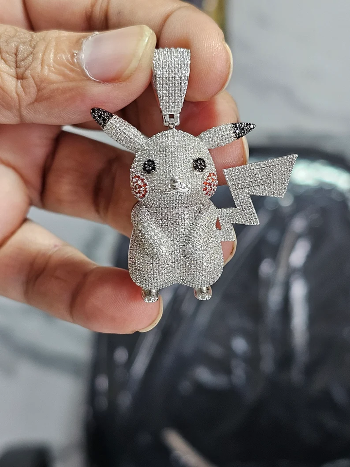 Pendentif Pikachu en argent sterling 925 plaqué or avec moissanite de 7 carats pour homme, coupe ronde, style hip-hop cartoon