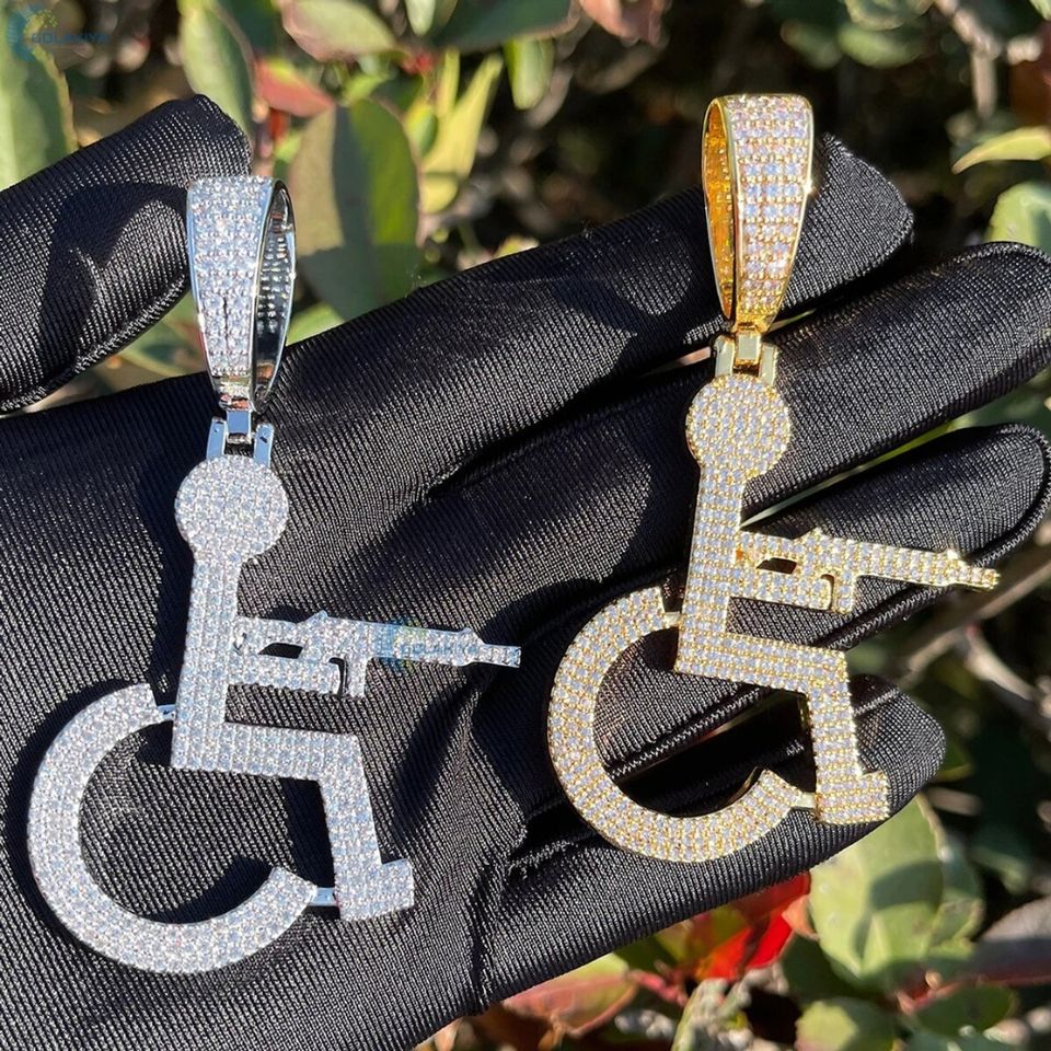 Pendentif glacé Incolore Moissanite Collier Homme Fauteuil roulant Shooter Hip Hop Pendentif Rappeur Pendentif