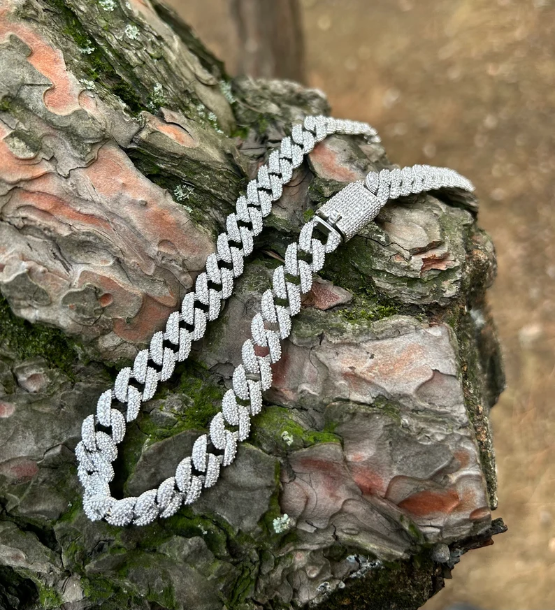 Chaîne à maillons cubains en diamant Moissanite VVS Iced Out Round Cut pour chaîne unique pour homme en argent sterling 925