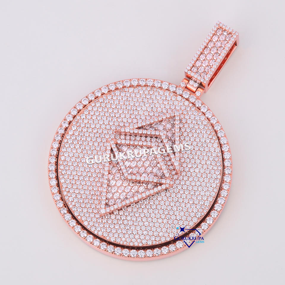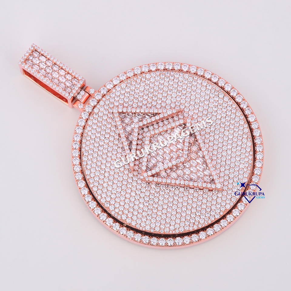 Ronde glacée avec un design complexe de diamants cultivés en laboratoire Bijoux de luxe parfaits pour un pendentif élégant de tous les jours pour hommes