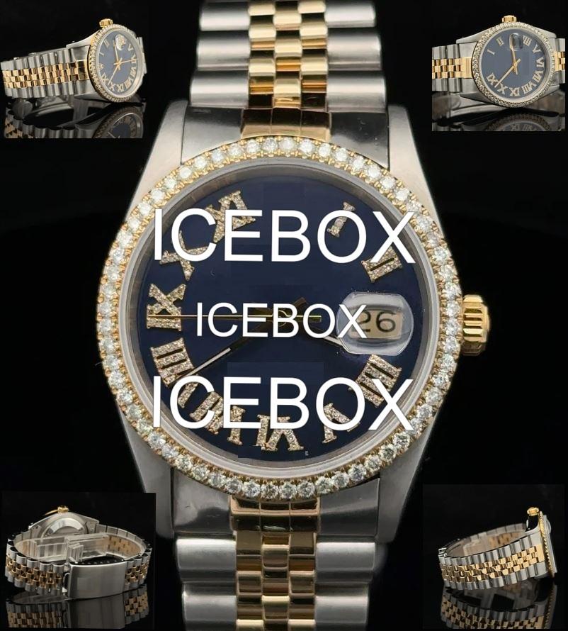 Montre automatique pour homme en acier inoxydable bicolore or rose sertie de moissanite avec cadran en verre, montre de plongée