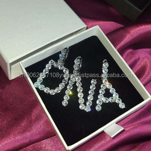 Pendentif Iced Out VVS Lab Grown Diamonds A-Z Lettres Initiales en Argent Sterling 925 Bijoux Hip Hop de Luxe
