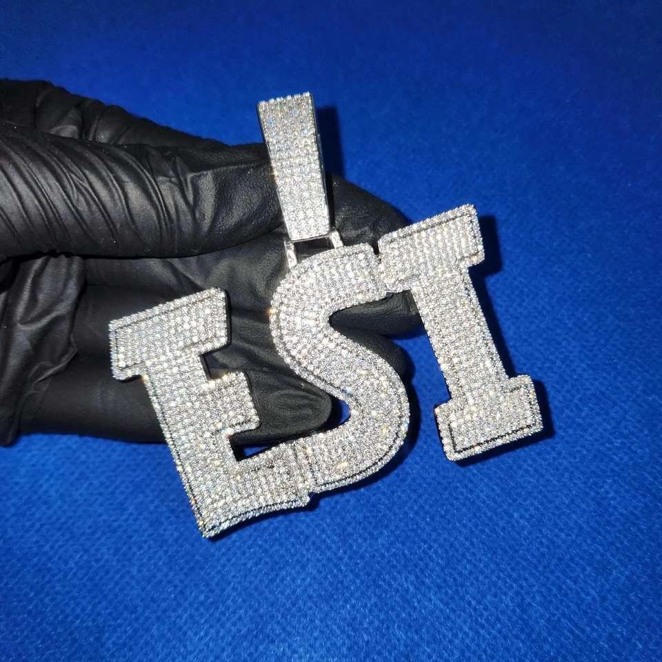 Pendentif pour homme en argent sterling 925 plaqué or blanc, lettre hip hop, moissanite VVS