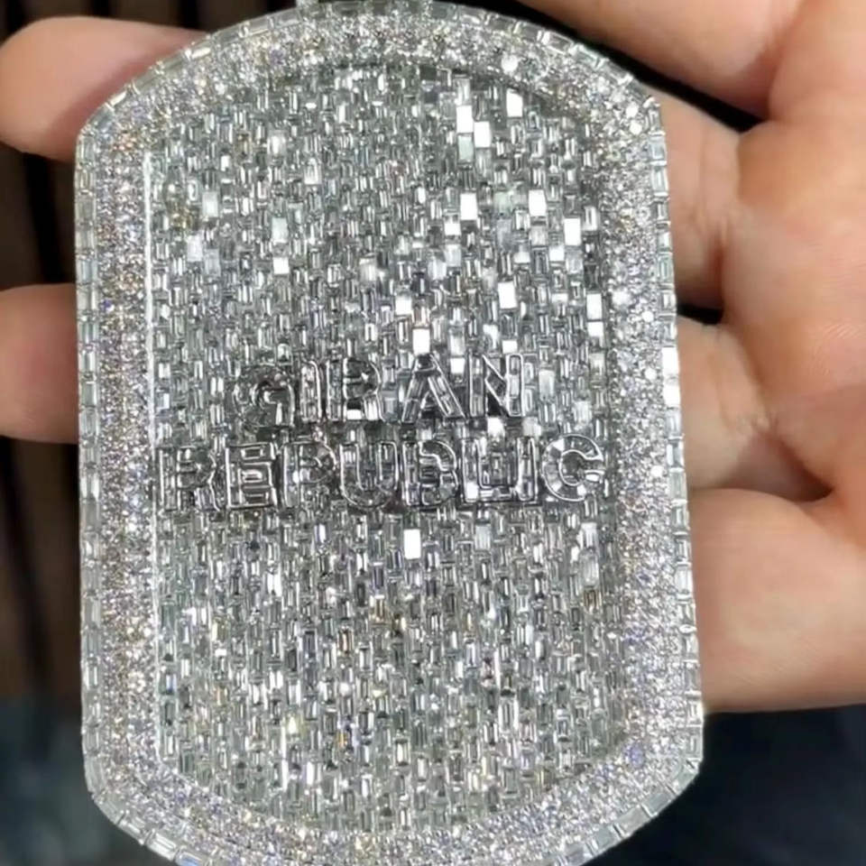 Pendentif rectangulaire glacé avec pierres baguette entièrement serties, charme en moissanite de luxe Clean Republic Hip Hop