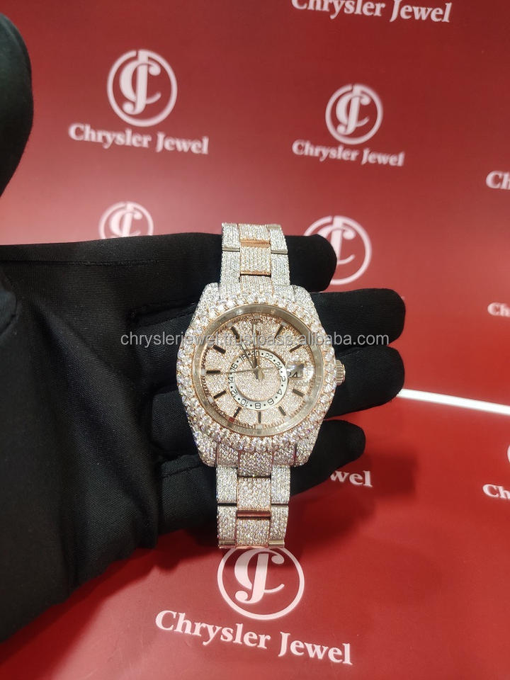 Montre en acier inoxydable glacée buste fait main étincelant VVS Moissanite bijoux mouvement mécanique bijoux à la mode