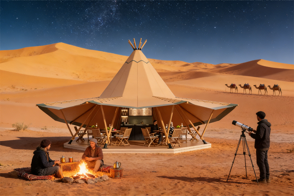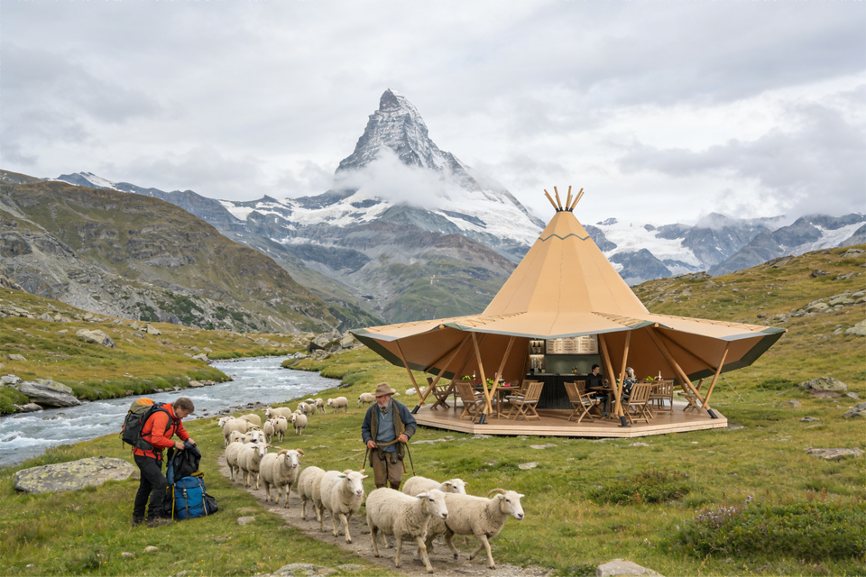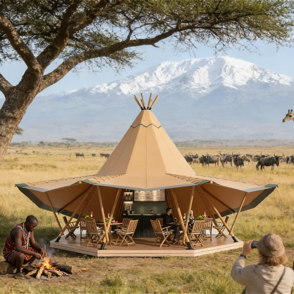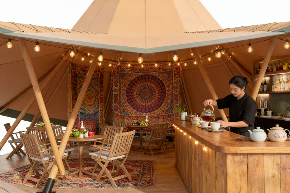 Tente de glamping pyramidale emblématique | Grand tipi en toile pour des complexes hôteliers et des rassemblements uniques
