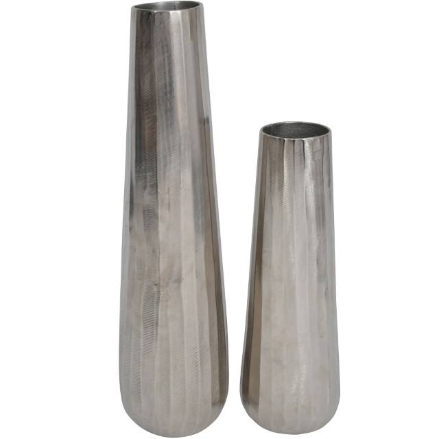 Iconic Ripples Silver Aluminum Tapered Vase est une pièce décorative pour la maison en aluminium avec un