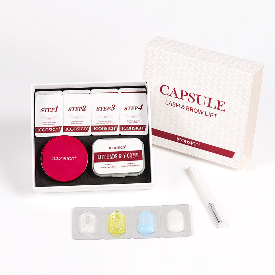 Iconsign Home Lotion de fixation pour permanente en capsule jetable, soin nourrissant après-soin 2 en 1 pour le lifting des cils et des sourcils, kit en blister avec baume adhésif