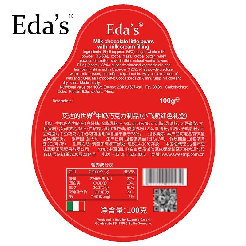 Ida's World Chocolat au lait italien Ours volant Aromatisé à la menthe Aluminium enduit Boîte de mariage Boîte-cadeau d'accompagnement