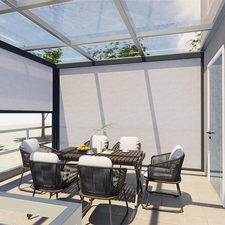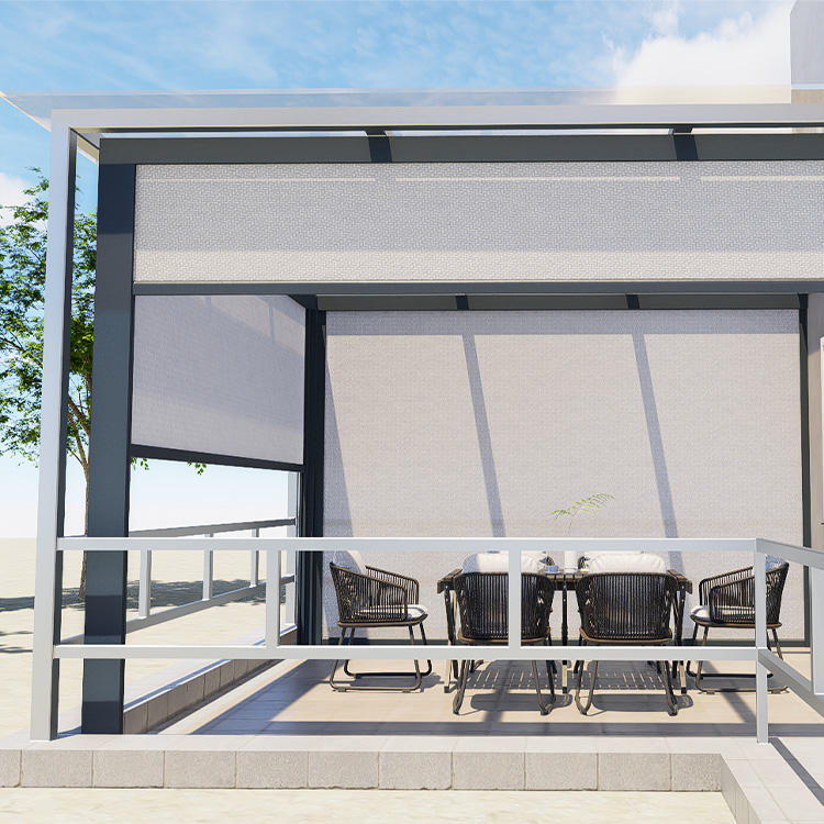 Store vertical motorisé électrique encastré en métal, rétractable, imperméable, pour protection solaire extérieure de porte de patio