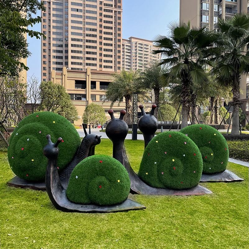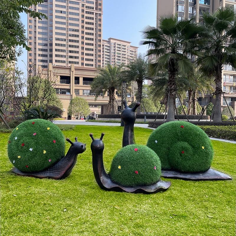 Sculpture d'escargot idyllique en fibre de verre verte - Décoration de jardin sculptée à la main pour pelouse, cour et jardin arrière, tailles personnalisées disponibles
