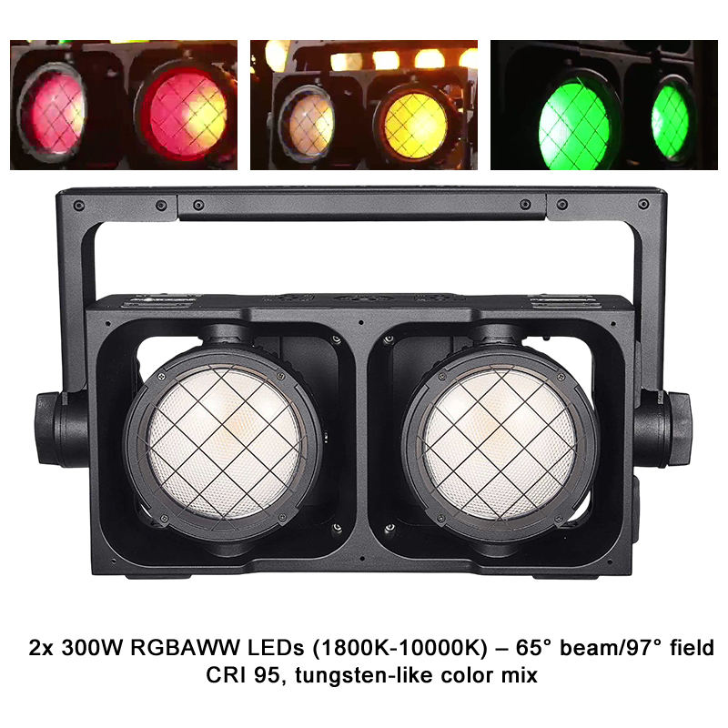 Igracelite CRI 95 2x300W RGBAWW LED Blinder Étanche IP65 DMX512/RDM pour Éclairage de Scène de Concert et Événement