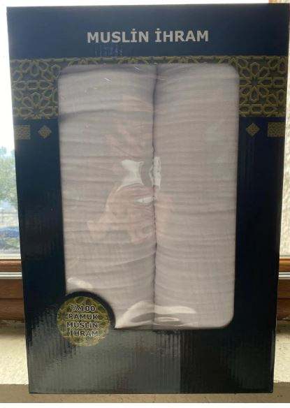 Ihram, % 100 coton, mousseline 4 couches, fabriqué en Turquie, couleur blanche, anti-transpirant, hydrophile, tricot simple